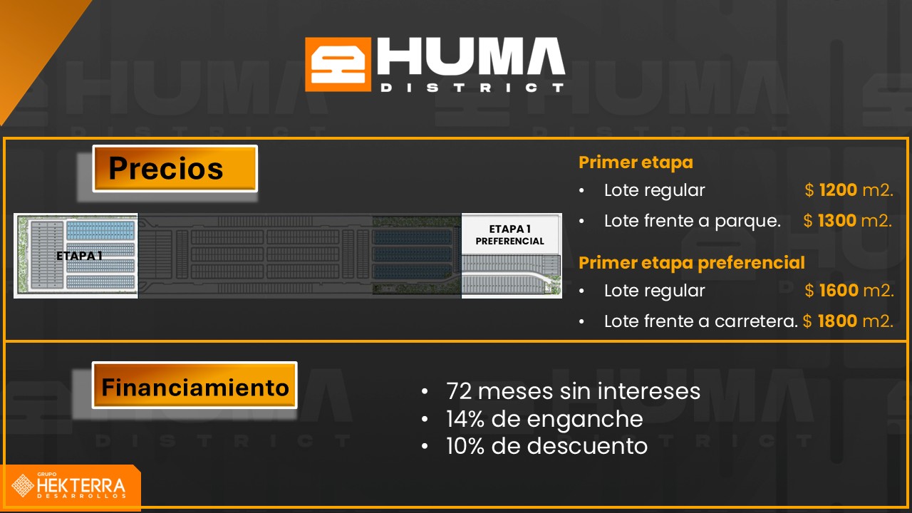 HUMA DISTRICT está conformado por 976 lotes desde 160 m2 hasta 1,300m2: con una gran ventaja competitiva en cuanto a precio y ubicación.