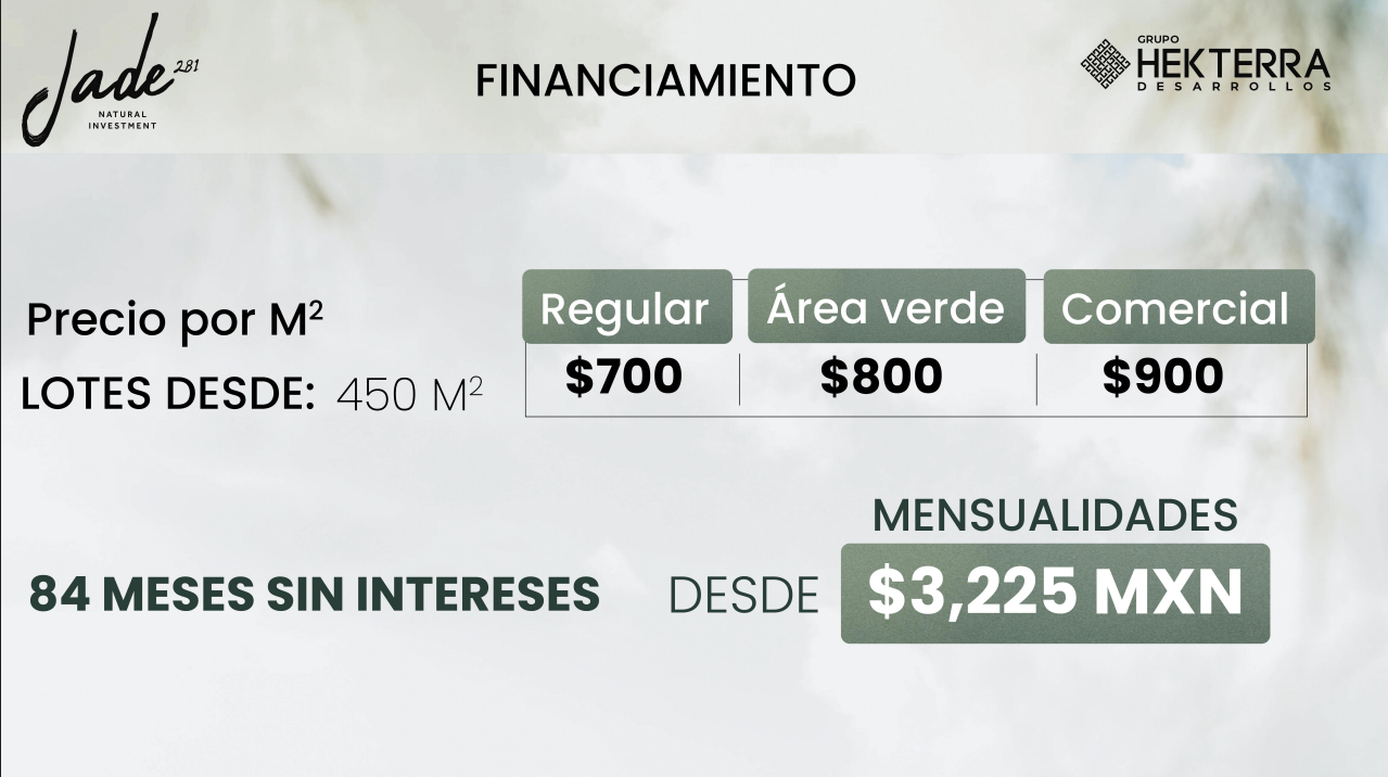 JADE281 es un desarrollo pensando para ti, que buscas un lugar especial para adquirir pensando en tu futuro; que se encuentra actualmente disponible en su 3ra etapa.